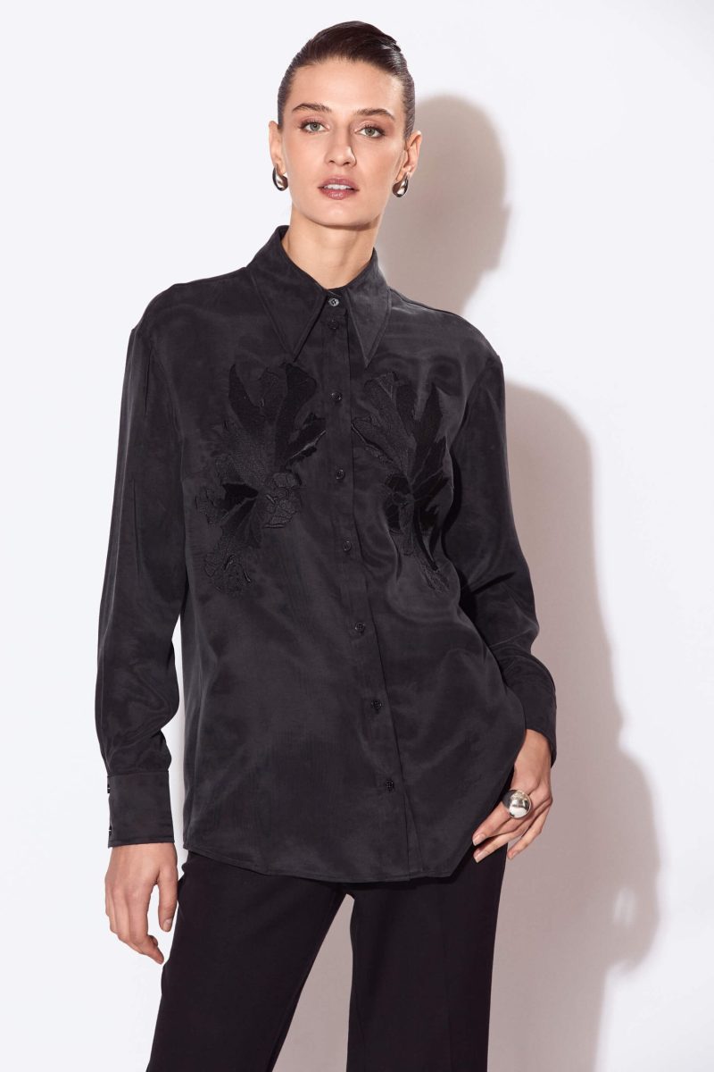 O camasa lejera, cu o silueta dreapta si lungime sub linia soldurilor. Linia umerilor este coborata si are o broderie simetrica in zona pieptului.