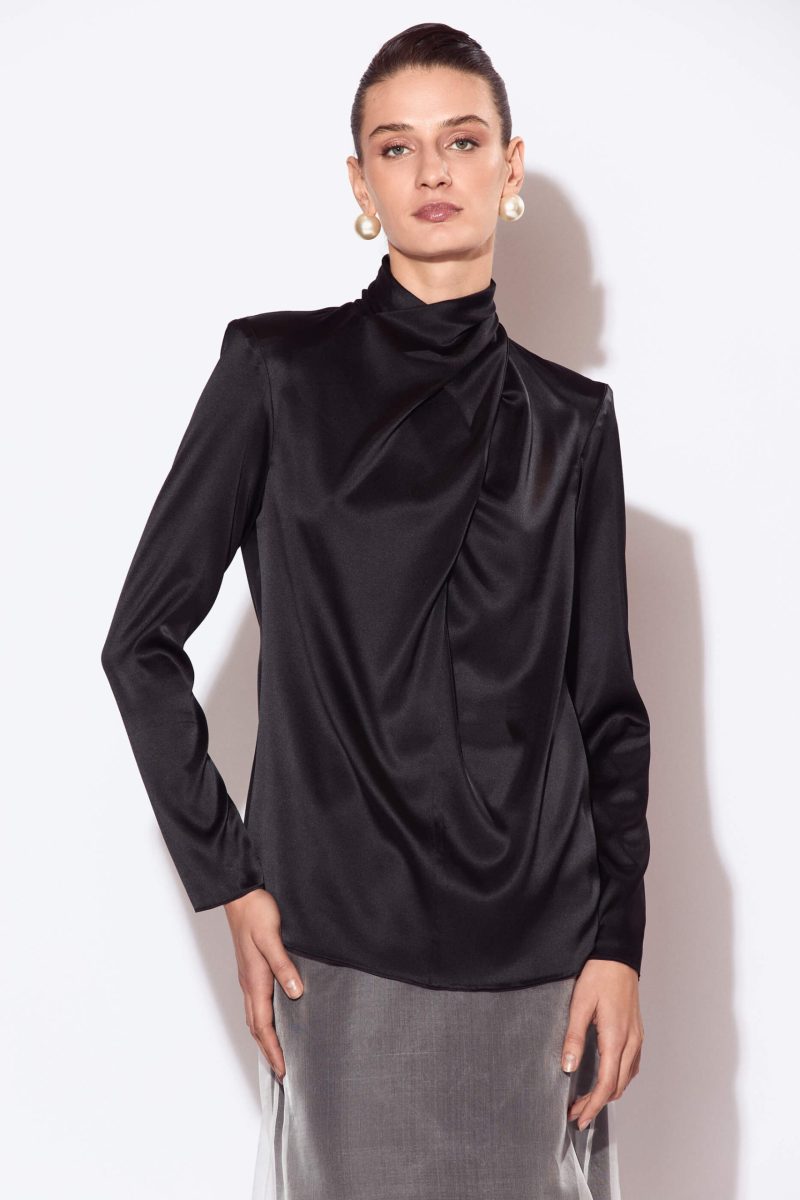 Top Negru Drapat din Matase
