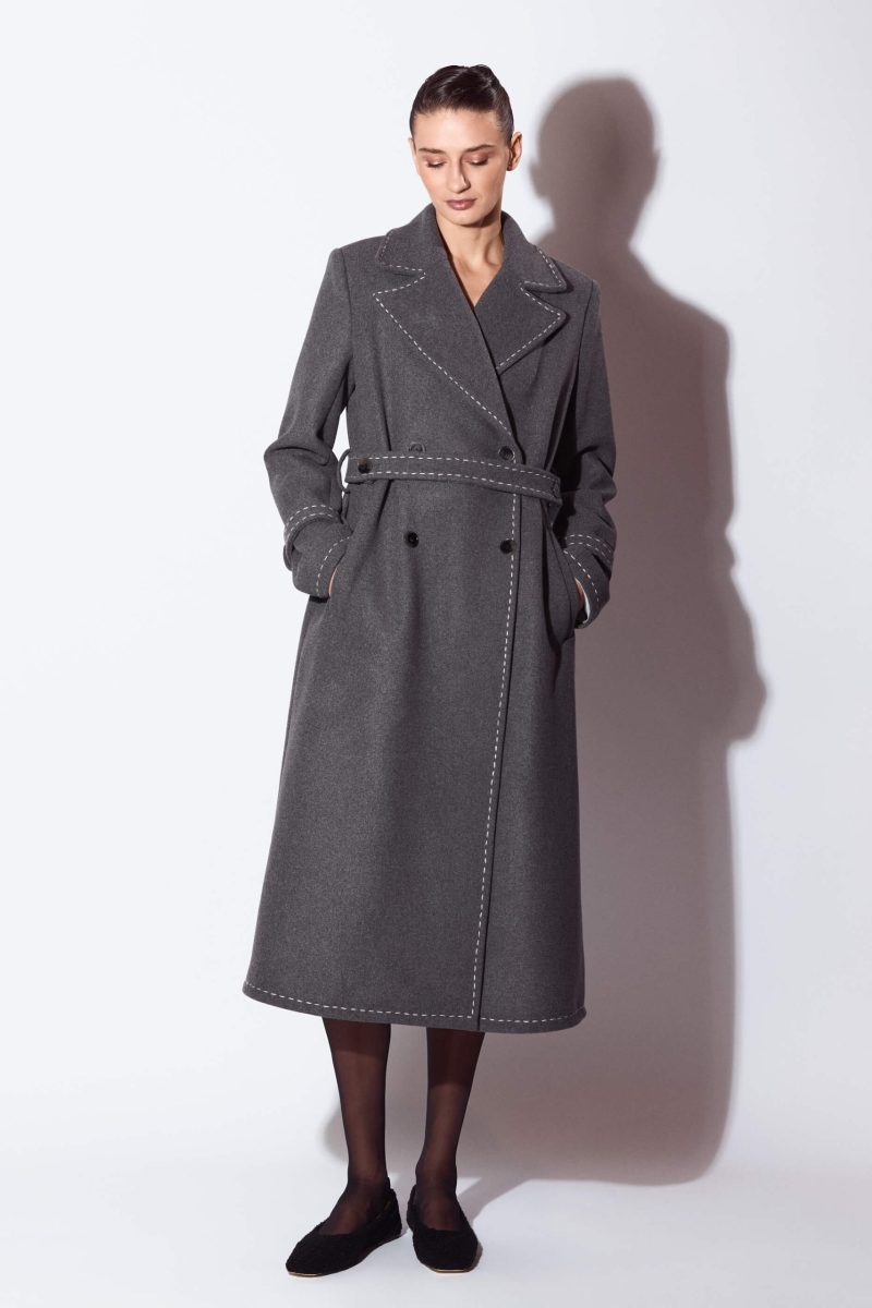 Acest palton este confectionat din amestec de lana si este decorat cu tighele decorative realizate manual. Are o croiala dreapta si este captusit.