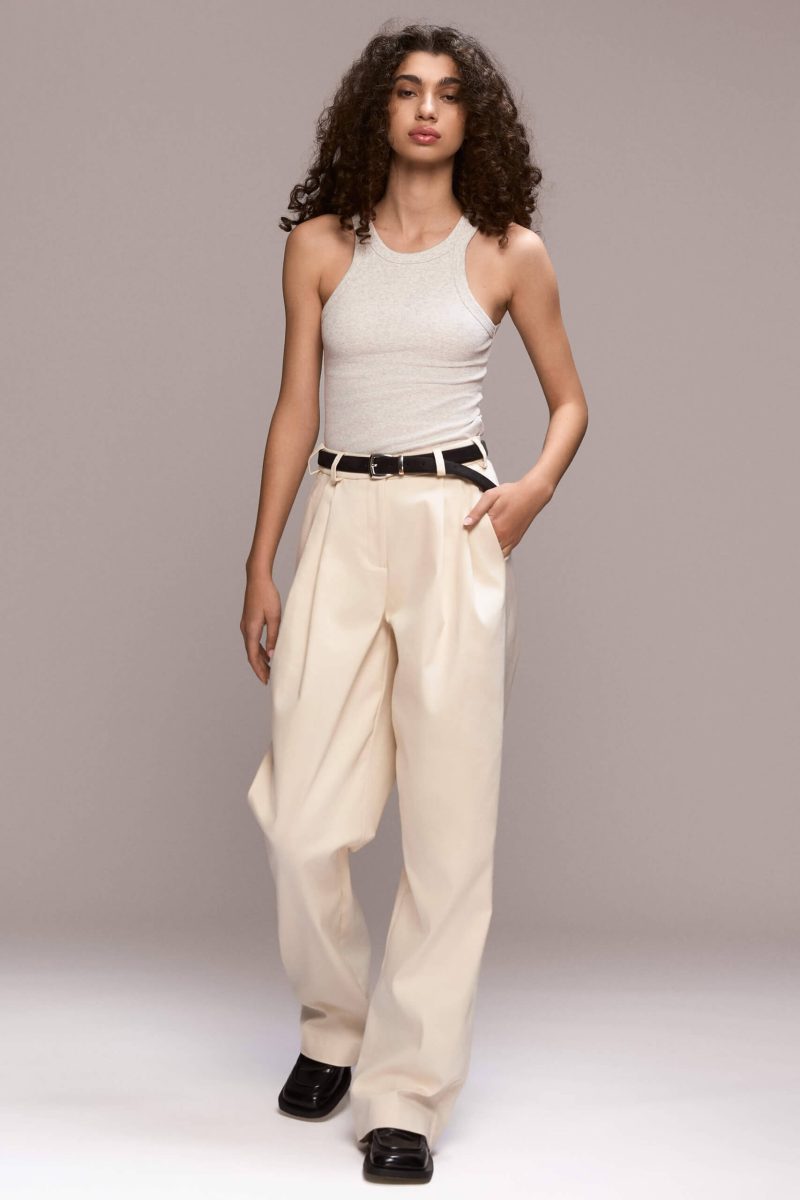 Wide-Leg Ivory Pleated Trousers